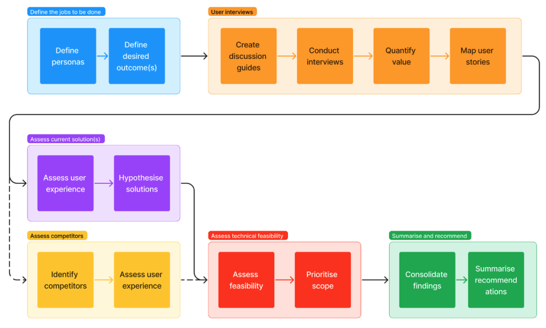 We needed to minimise the amount of time and number of people it took to confidently define user needs (without increasing the total hours worked per person, per week) so that we could minimise the risk of research or design becoming a bottleneck.