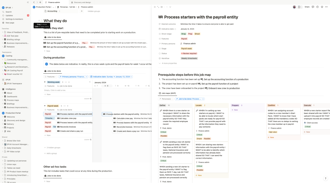 By combining the relational structure of Notion and the theory behind jobs-to-be-done, I constructed a relational research directory to enable the team to create a living view of our users and their needs. This system enables everyone to conduct and document user research, making it immediately available to everyone else.